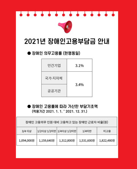 2021년 장애인 고용부담금 부담기초액 안내