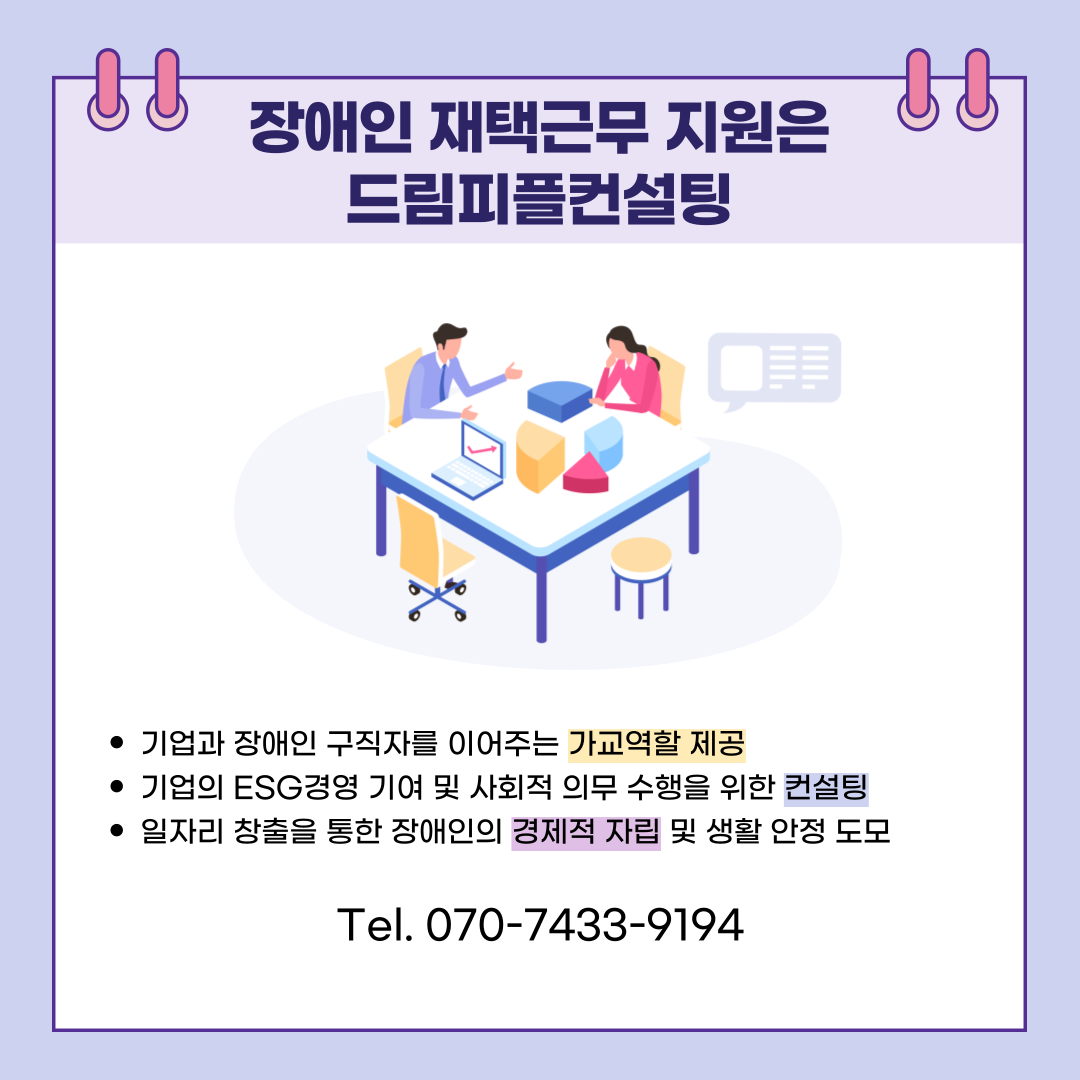 오는 8월 25일까지 서울, 경기, 부산 등에 위치한 10개 호텔과 협업하여 채용을 지원한다고 해요! 다양한 직무가 있으니 관심있으신 분들은 입사지원서 작성 후, 신청 GoGo! 드림피플컨설팅은 여러분과 함께합니다. 더욱 더 도움을 드릴 수 있는 드림피플컨설팅이 되겠습니다! 드림피플은 일자리 부족과 긍정적 인식의 부재라는 고용 현실을 딛고 재택근무를 통해 그 능력에 맞는 직업생활을 통해 경제적 자립을 꿈꾸는 모든 장애인 근로자분들을 원합니다! |